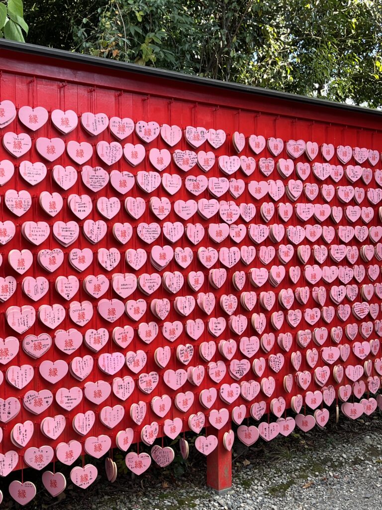 犬山城のふもとには神社があります。こちらの神社はハートの絵馬とトンネルのように連なる鳥居が写真スポットとして有名です。