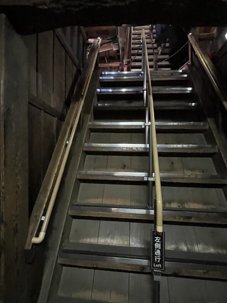 早速城の中に入っていきましょう!ウキウキで入城したらほぼ90度の階段が、、天守閣に行くまでにこの階段が何個もあり流石に疲れました。特に、下りは怖かったです。階段を「下りる」というよりは「落ちる」という表現があってると思います。足腰が弱い方は注意を!