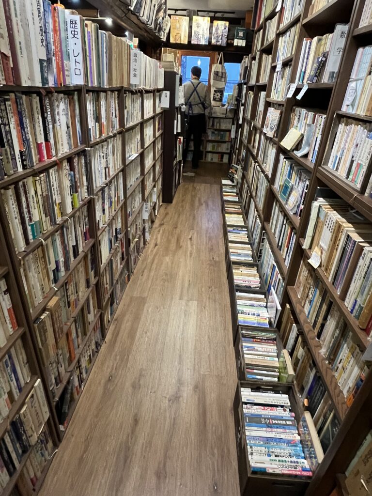 スペースは2階まであり、沢山の種類の本が置いてあります。本の種類は小説よりも専門書や歴史、自己啓発に関する本が多い印象です。店主さんが大学の教授だったのかな?