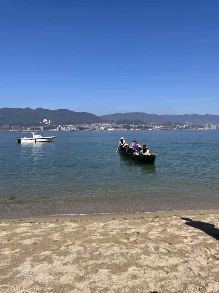 あ!あれはさっき海岸で見た船ではありませんか!あの船は海の上の鳥居を渡れるんですね!とても貴重な体験ができそうです!