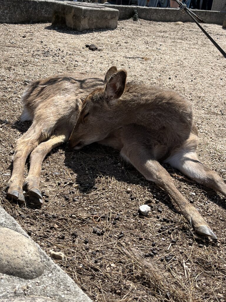 船に乗って15分ほどで宮島に到着しました!船から降りたらそこら中に鹿さんがお出迎えしてくれました。奈良の次に人馴れした鹿でした笑