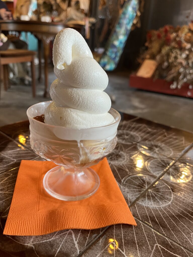 こちらのプリンはほろ苦いカラメルをスポイトで垂らして食べるスタイルです!硬めのプリンですがなめらかでカラメルとソフトクリームどちらにも合いました!