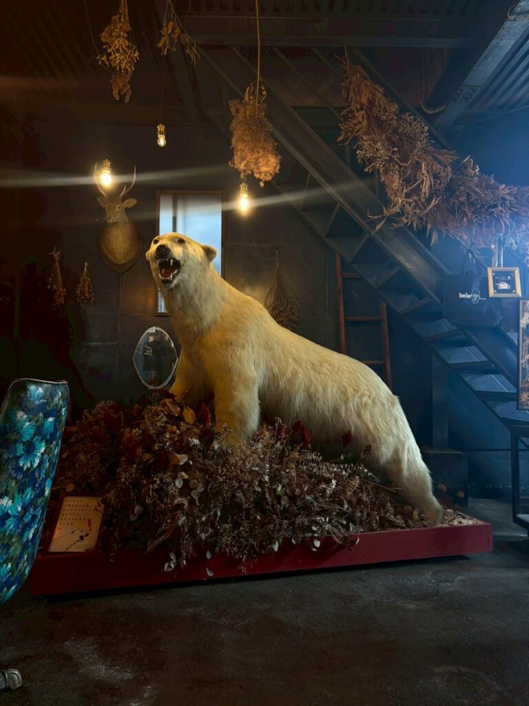 店内に入り、一番に等身大の白熊のはく製が出迎えてくれてびっくりしました!白熊のはく製って何万円するんだろう、、、